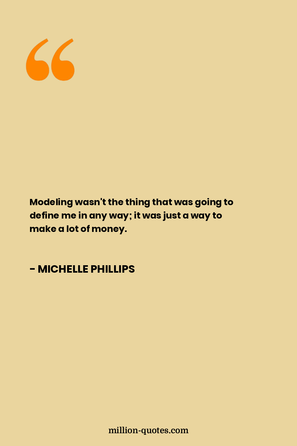 Modeling wasn't the thing that was going to define me in any way; it was just a way to make a lot of money.