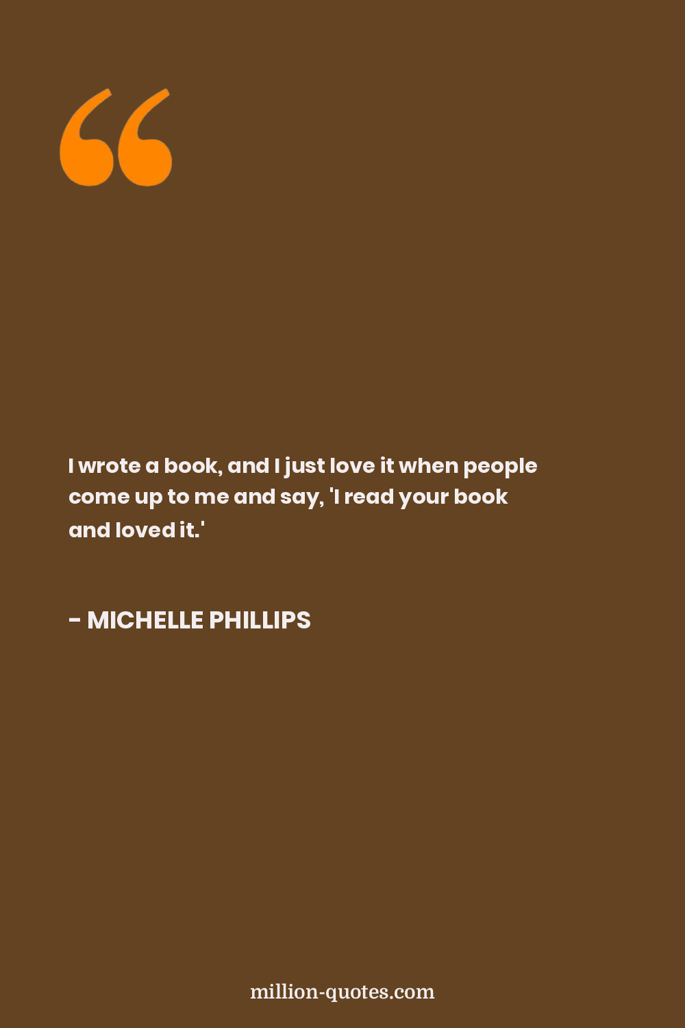 I wrote a book, and I just love it when people come up to me and say, 'I read your book and loved it.'