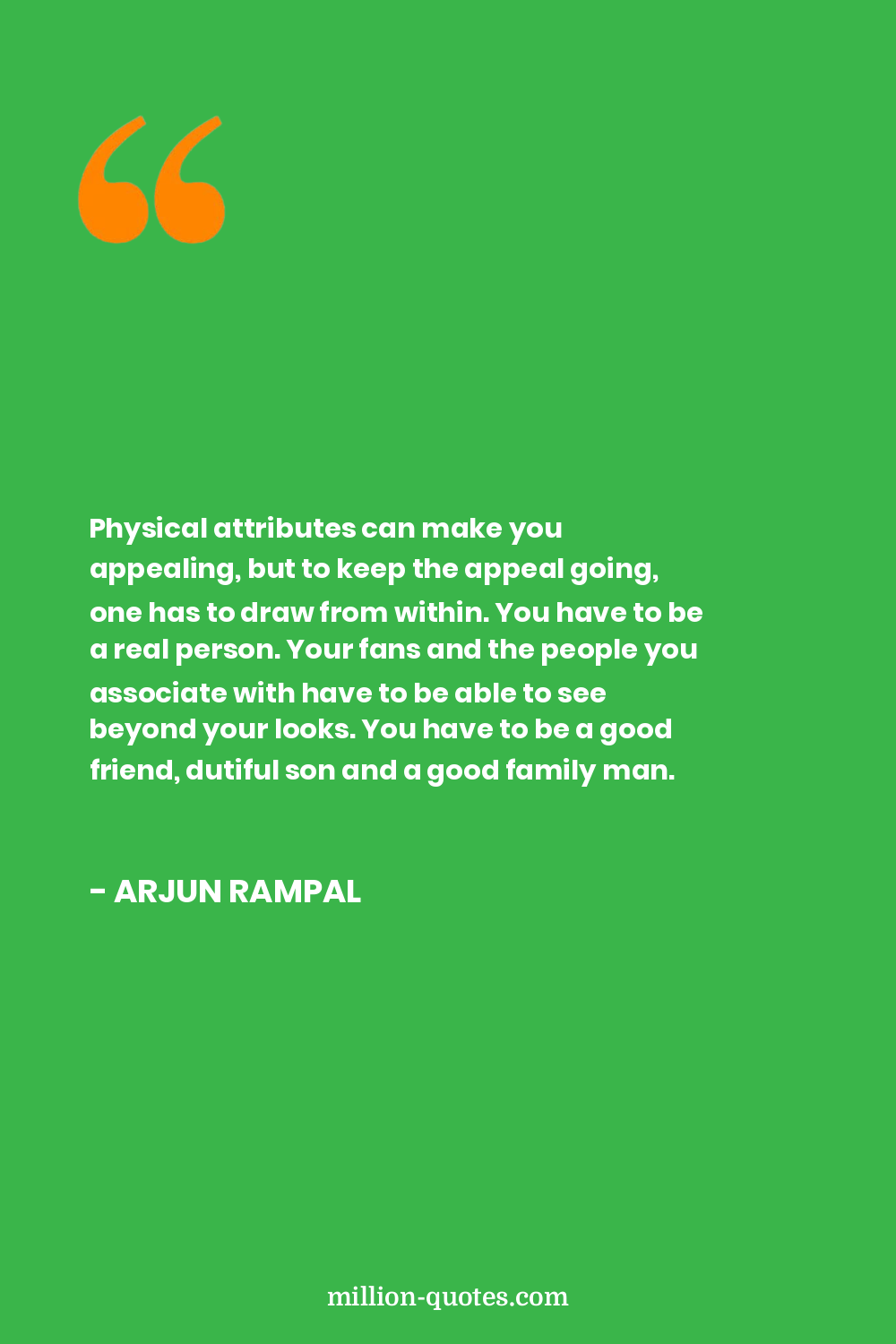 Physical attributes can make you appealing, but to keep the appeal going, one has to draw from within. You have to be a real person. Your fans and the people you associate with have to be able to see beyond your looks. You have to be a good friend, dutiful son and a good family man.