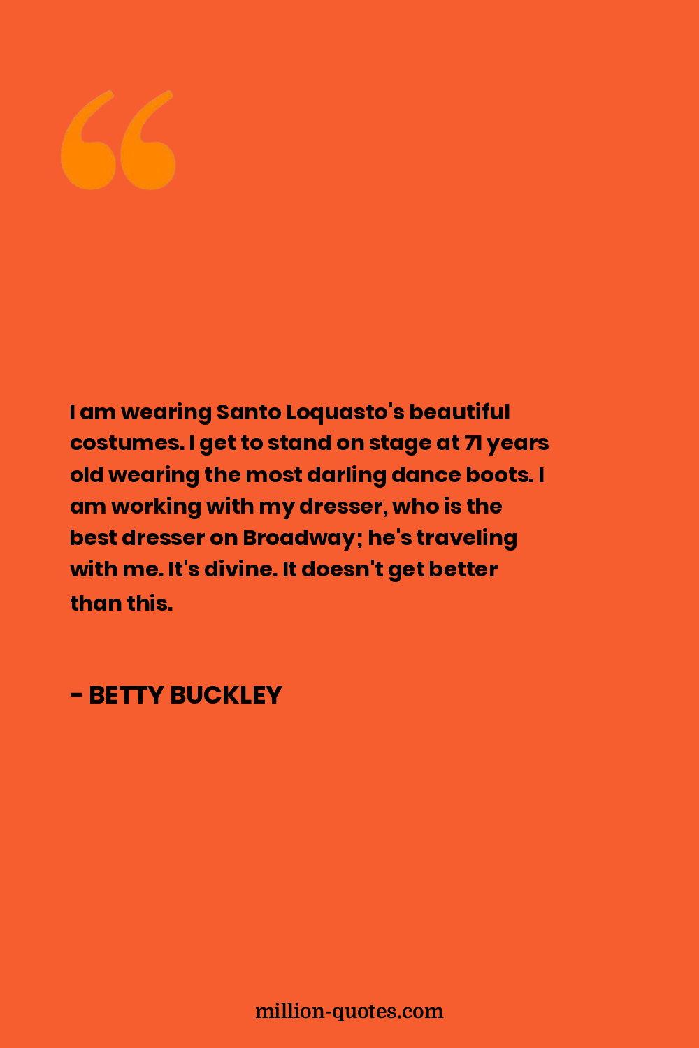 I am wearing Santo Loquasto's beautiful costumes. I get to stand on stage at 71 years old wearing the most darling dance boots. I am working with my dresser, who is the best dresser on Broadway; he's traveling with me. It's divine. It doesn't get better than this.