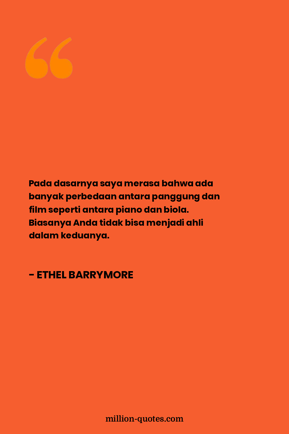 Pada dasarnya saya merasa bahwa ada banyak perbedaan antara panggung dan film seperti antara piano dan biola. Biasanya Anda tidak bisa menjadi ahli dalam keduanya.