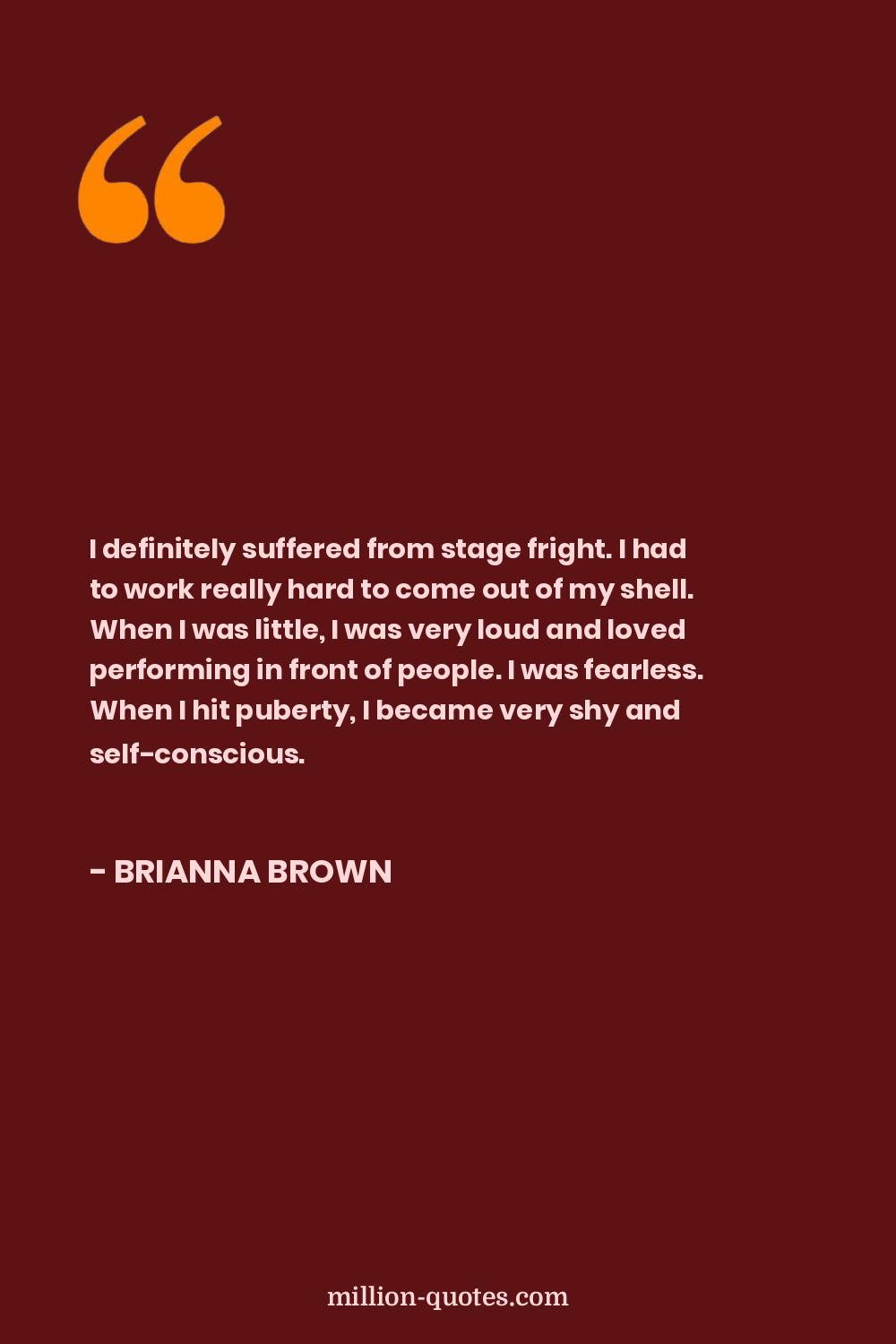 I definitely suffered from stage fright. I had to work really hard to come out of my shell. When I was little, I was very loud and loved performing in front of people. I was fearless. When I hit puberty, I became very shy and self-conscious.