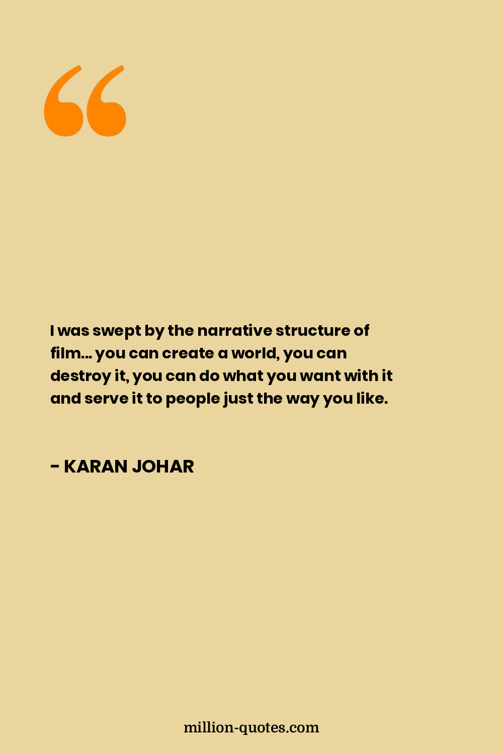 I was swept by the narrative structure of film... you can create a world, you can destroy it, you can do what you want with it and serve it to people just the way you like.