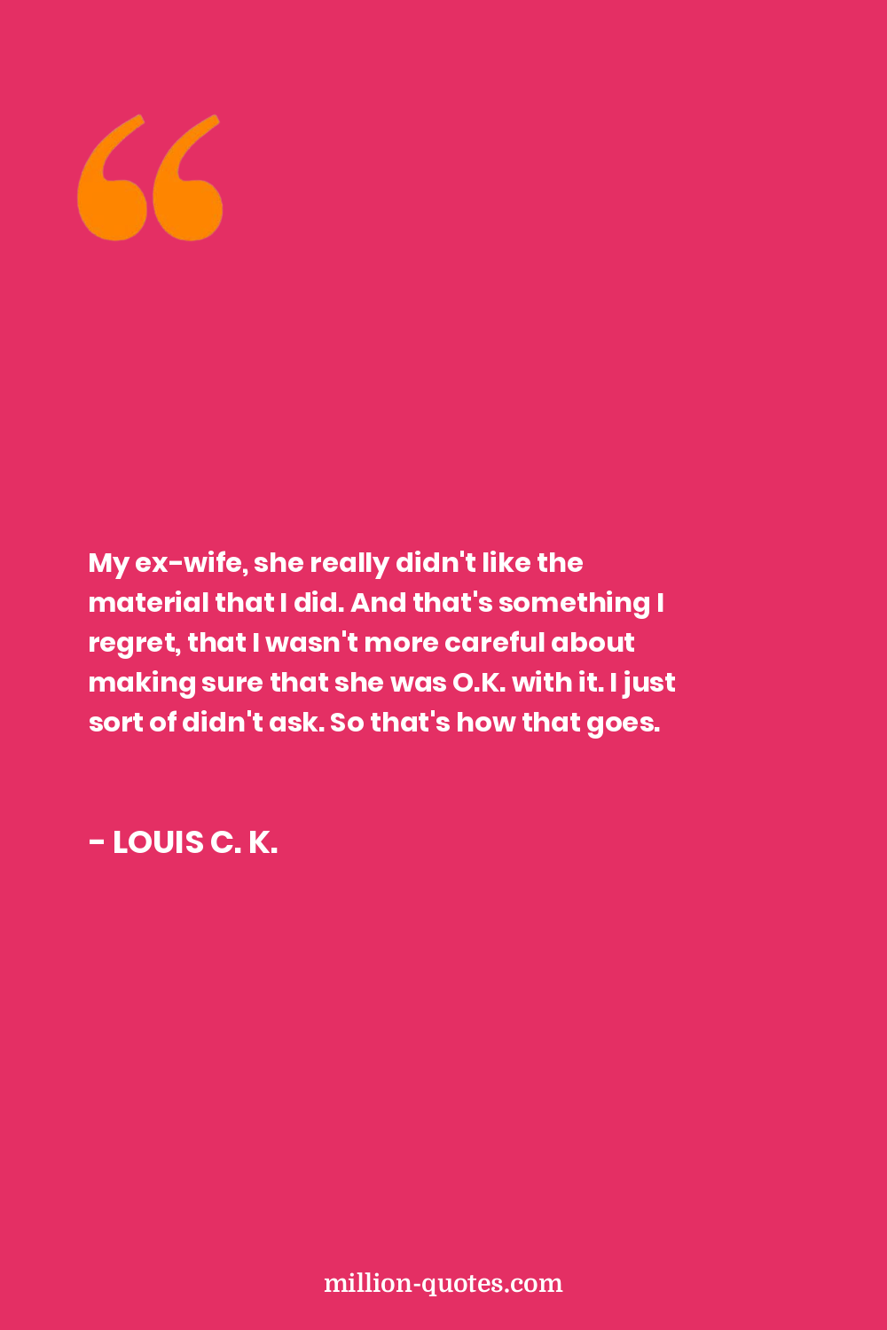 My ex-wife, she really didn't like the material that I did. And that's something I regret, that I wasn't more careful about making sure that she was O.K. with it. I just sort of didn't ask. So that's how that goes.