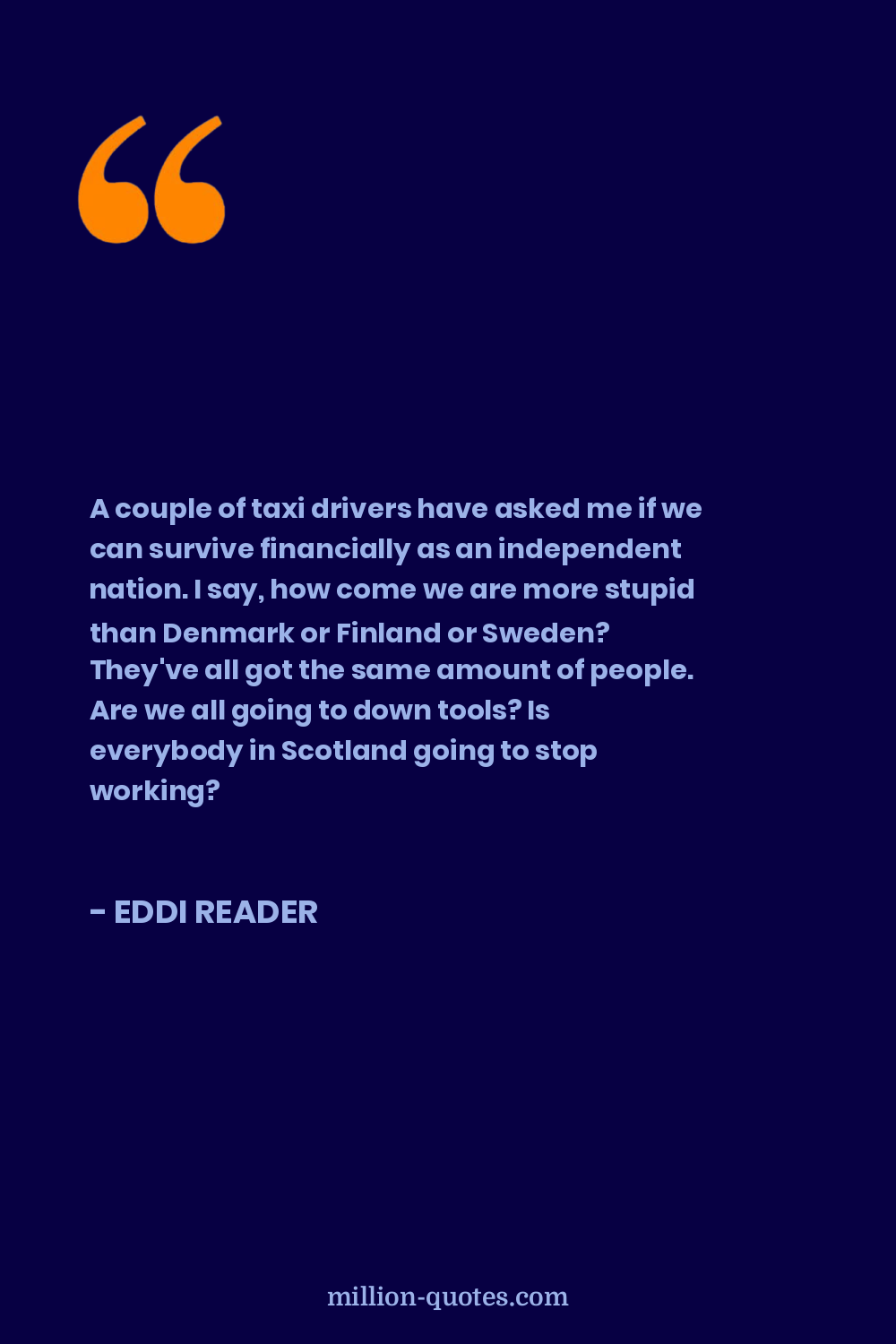 A couple of taxi drivers have asked me if we can survive financially as an independent nation. I say, how come we are more stupid than Denmark or Finland or Sweden? They've all got the same amount of people. Are we all going to down tools? Is everybody in Scotland going to stop working?