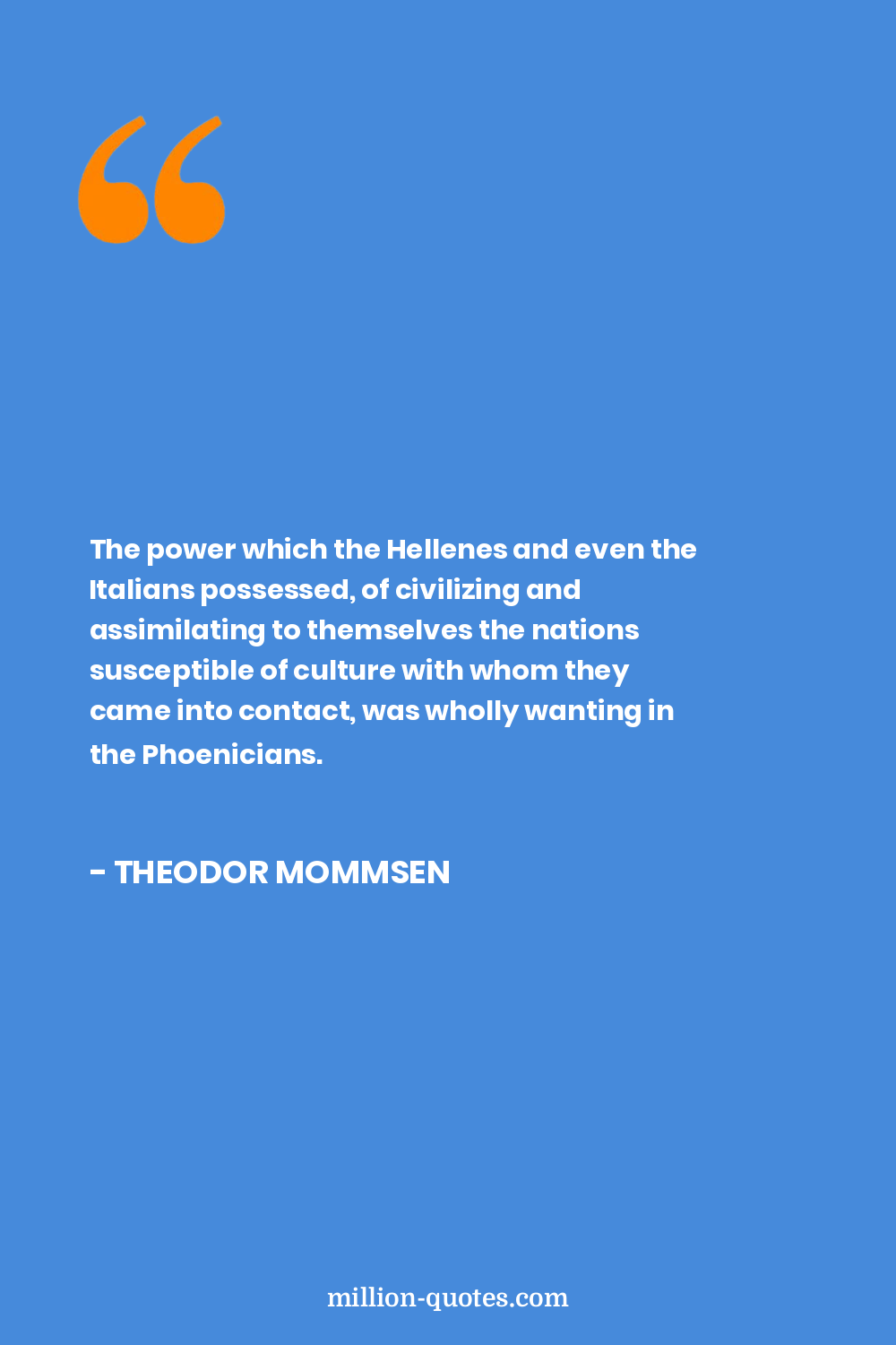 The power which the Hellenes and even the Italians possessed, of civilizing and assimilating to themselves the nations susceptible of culture with whom they came into contact, was wholly wanting in the Phoenicians.