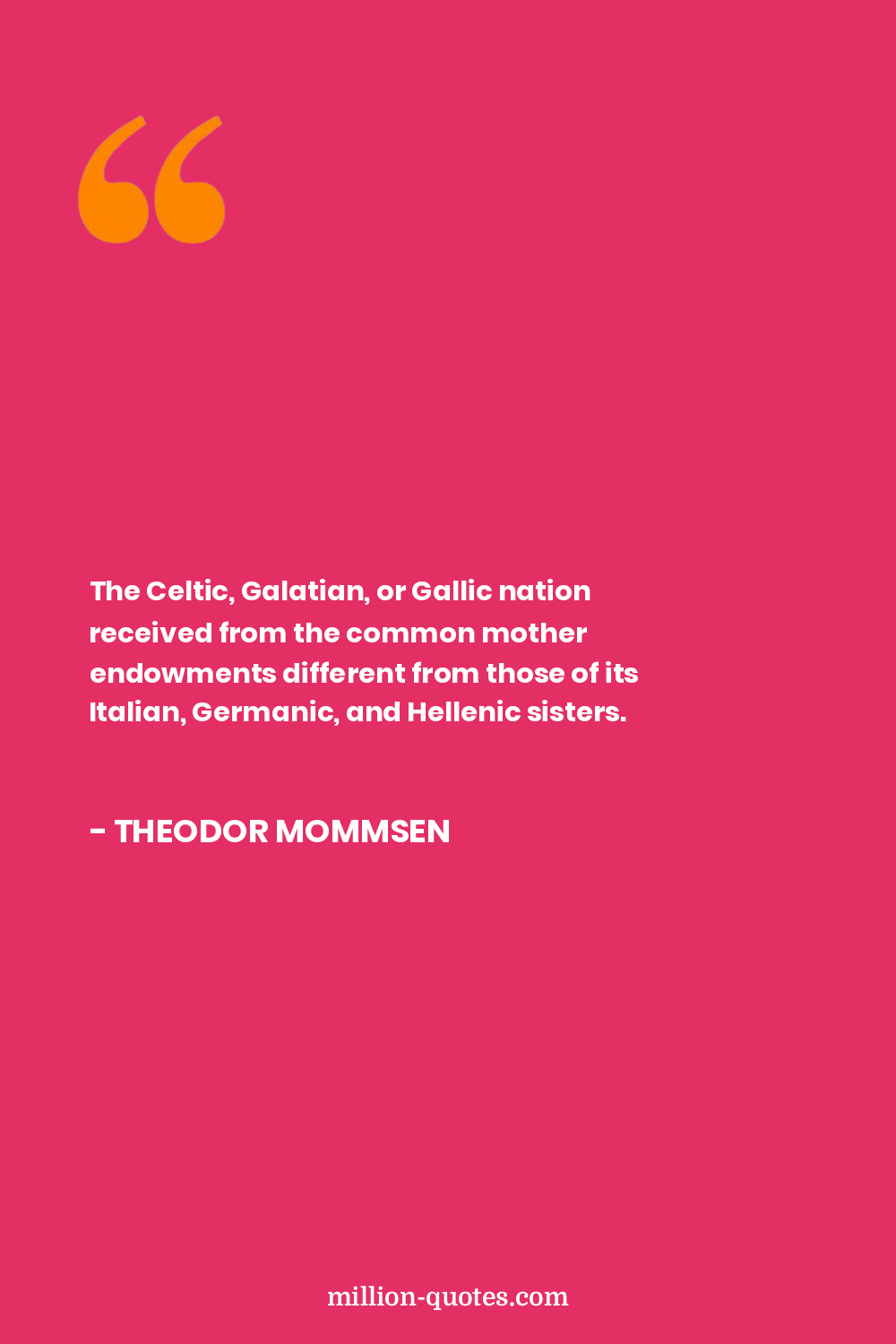 The Celtic, Galatian, or Gallic nation received from the common mother endowments different from those of its Italian, Germanic, and Hellenic sisters.