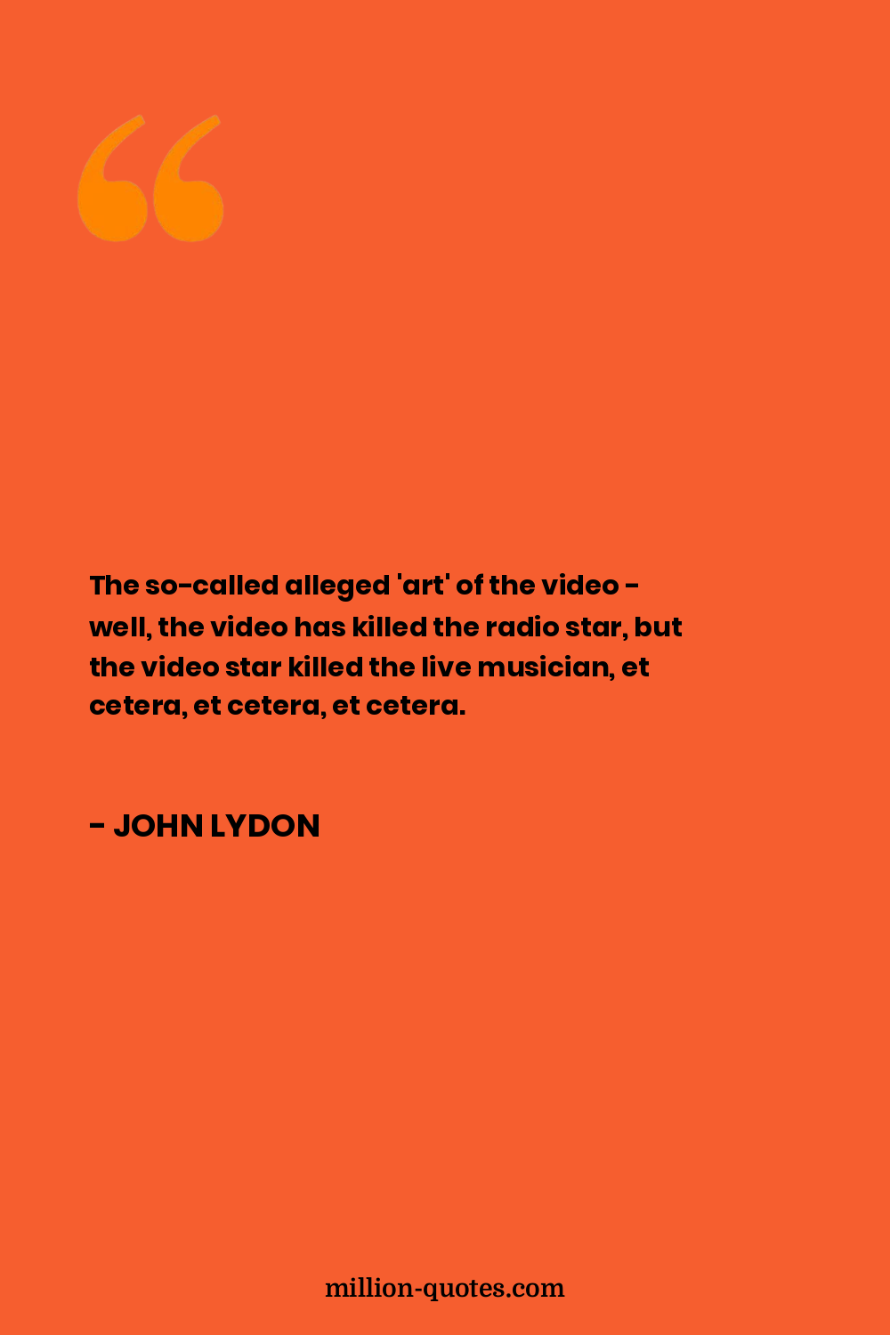 The so-called alleged 'art' of the video - well, the video has killed the radio star, but the video star killed the live musician, et cetera, et cetera, et cetera.