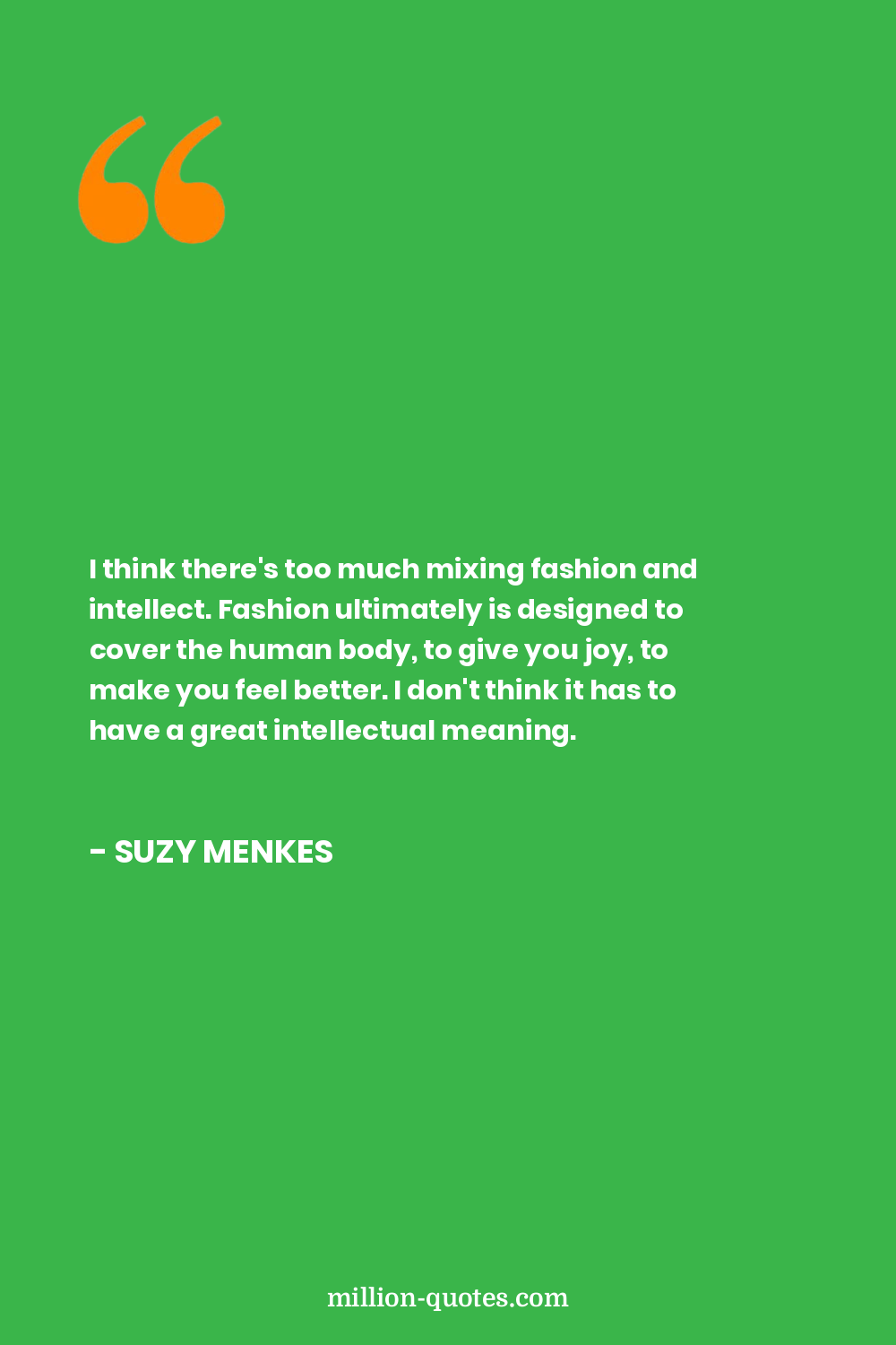 I think there's too much mixing fashion and intellect. Fashion ultimately is designed to cover the human body, to give you joy, to make you feel better. I don't think it has to have a great intellectual meaning.