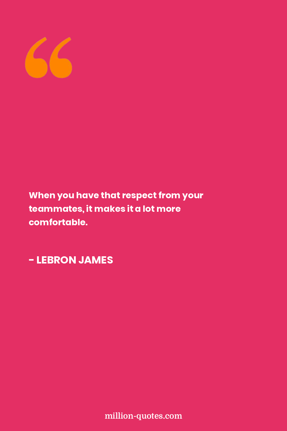 When you have that respect from your teammates, it makes it a lot more comfortable.