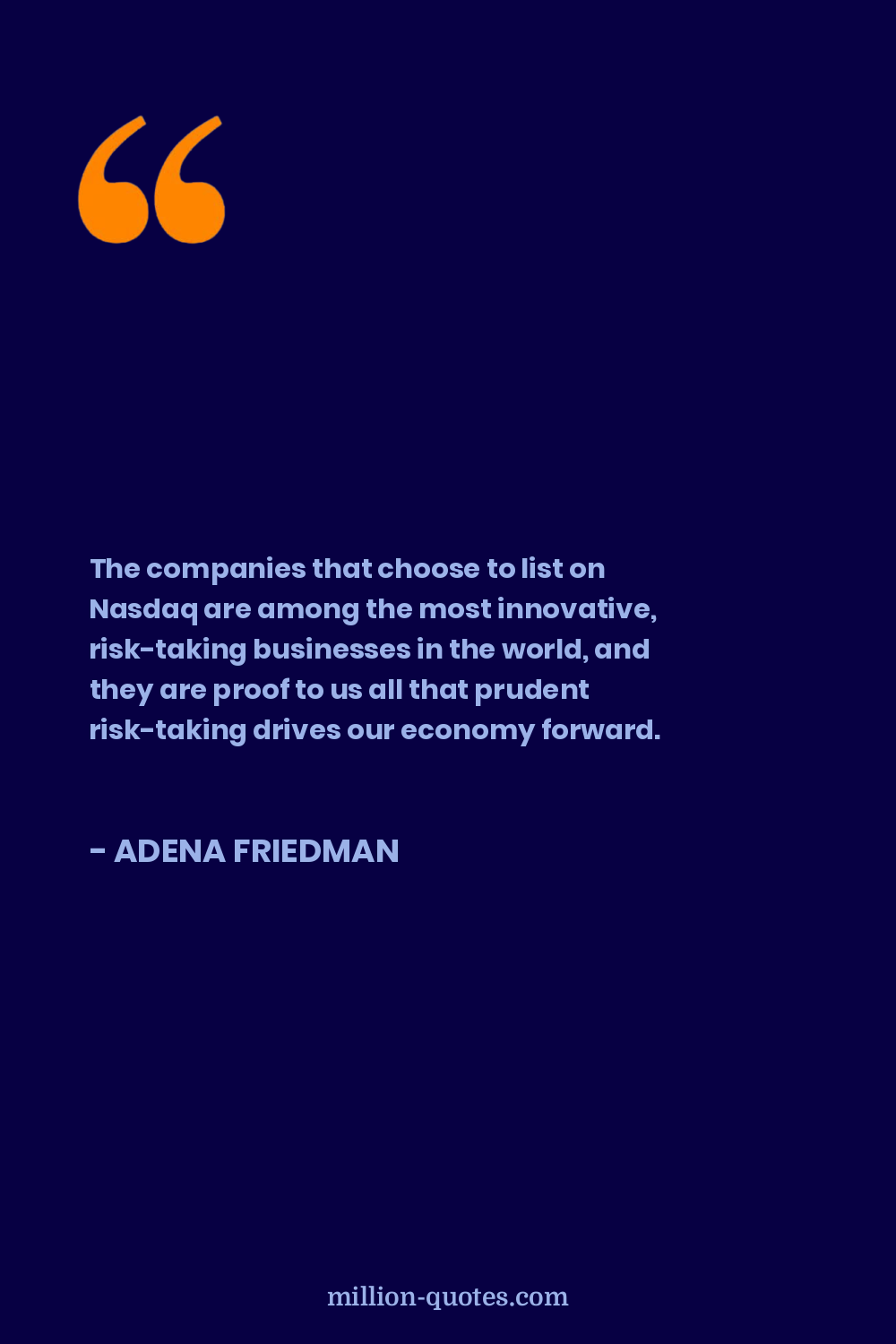 The companies that choose to list on Nasdaq are among the most innovative, risk-taking businesses in the world, and they are proof to us all that prudent risk-taking drives our economy forward.