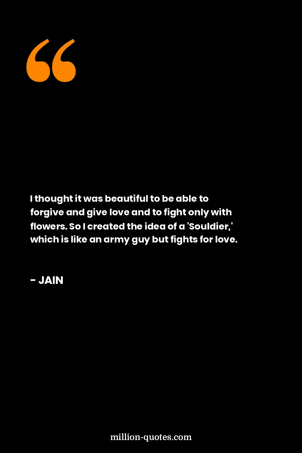 I thought it was beautiful to be able to forgive and give love and to fight only with flowers. So I created the idea of a 'Souldier,' which is like an army guy but fights for love.
