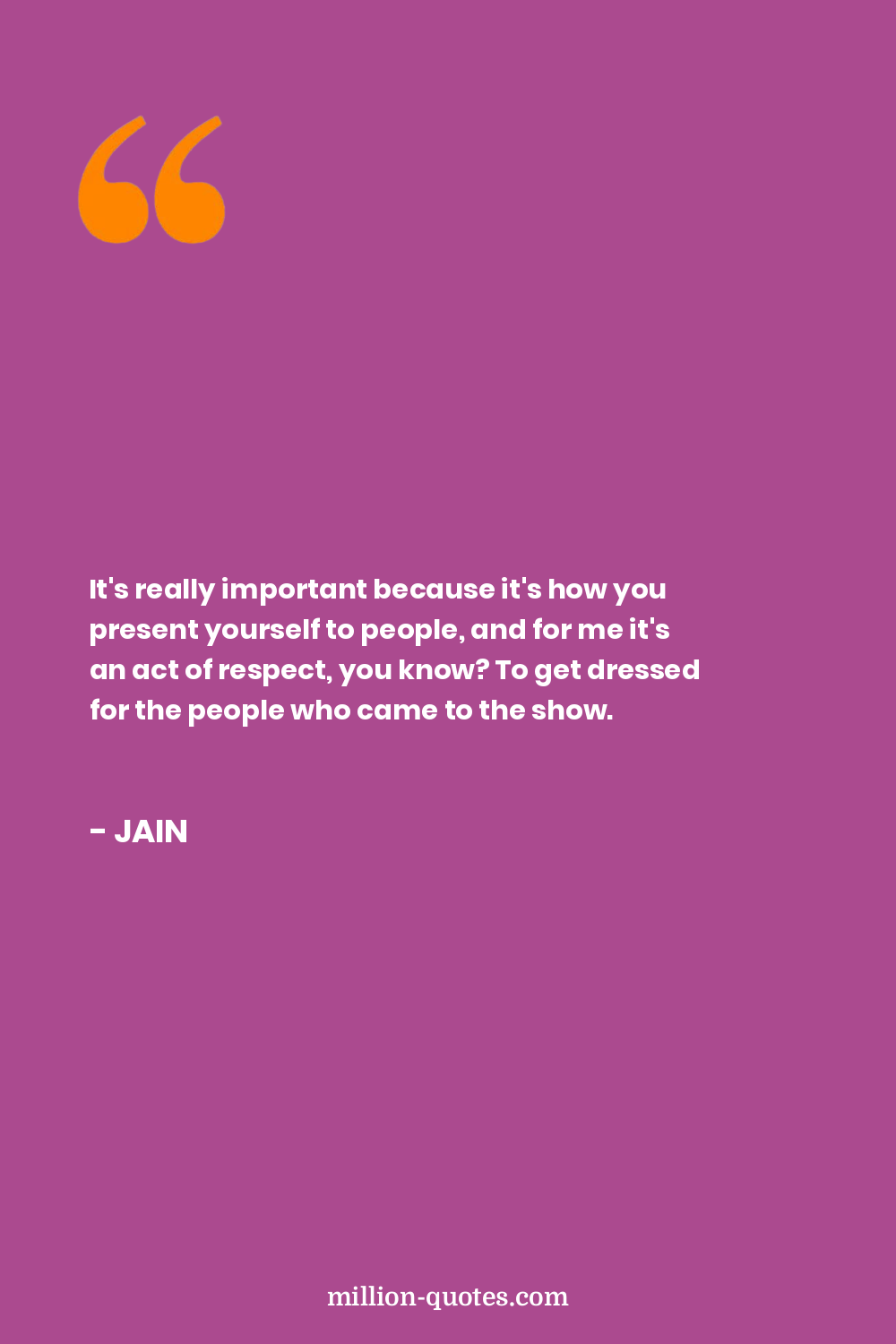 It's really important because it's how you present yourself to people, and for me it's an act of respect, you know? To get dressed for the people who came to the show.