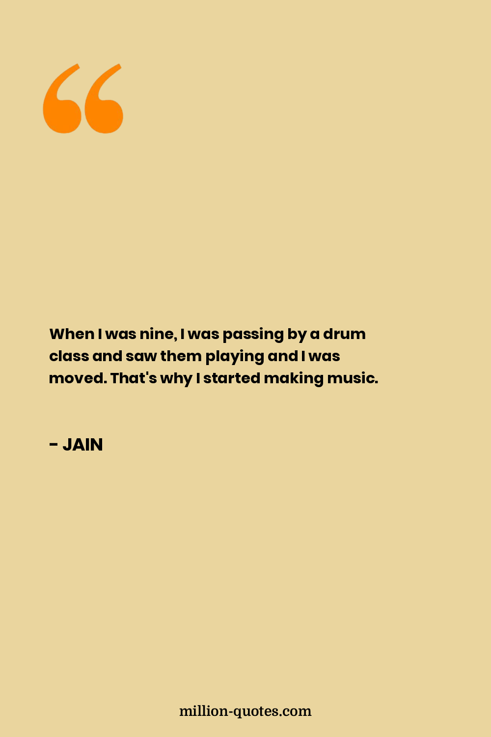 When I was nine, I was passing by a drum class and saw them playing and I was moved. That's why I started making music.
