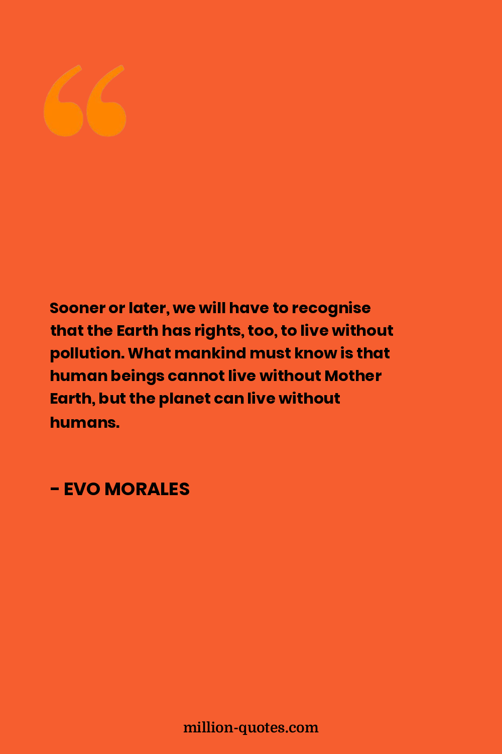 Sooner or later, we will have to recognise that the Earth has rights, too, to live without pollution. What mankind must know is that human beings cannot live without Mother Earth, but the planet can live without humans.