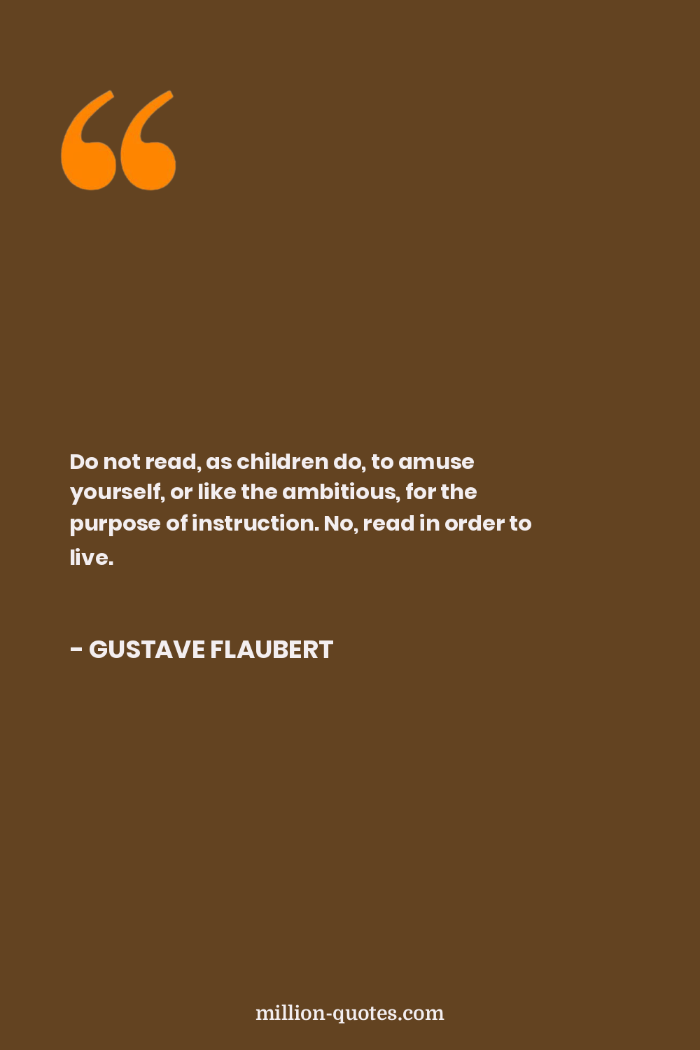 Do not read, as children do, to amuse yourself, or like the ambitious, for the purpose of instruction. No, read in order to live.