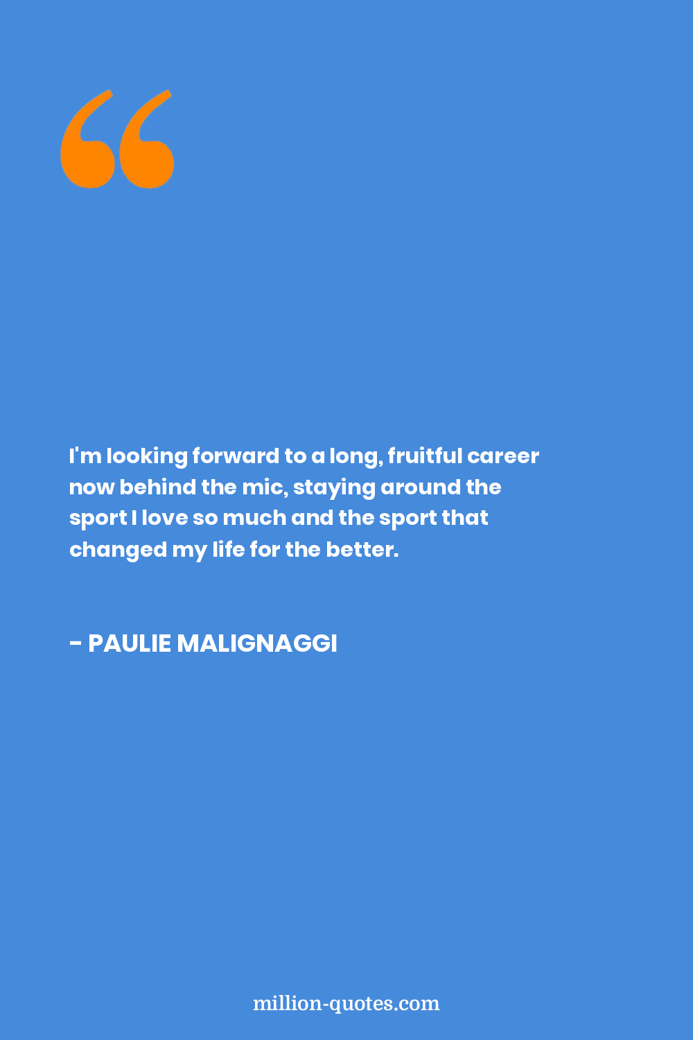 I'm looking forward to a long, fruitful career now behind the mic, staying around the sport I love so much and the sport that changed my life for the better.