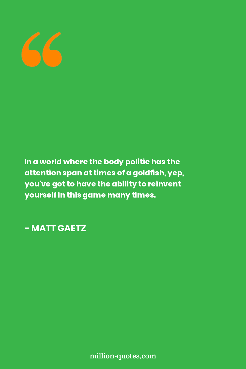 In a world where the body politic has the attention span at times of a goldfish, yep, you've got to have the ability to reinvent yourself in this game many times.