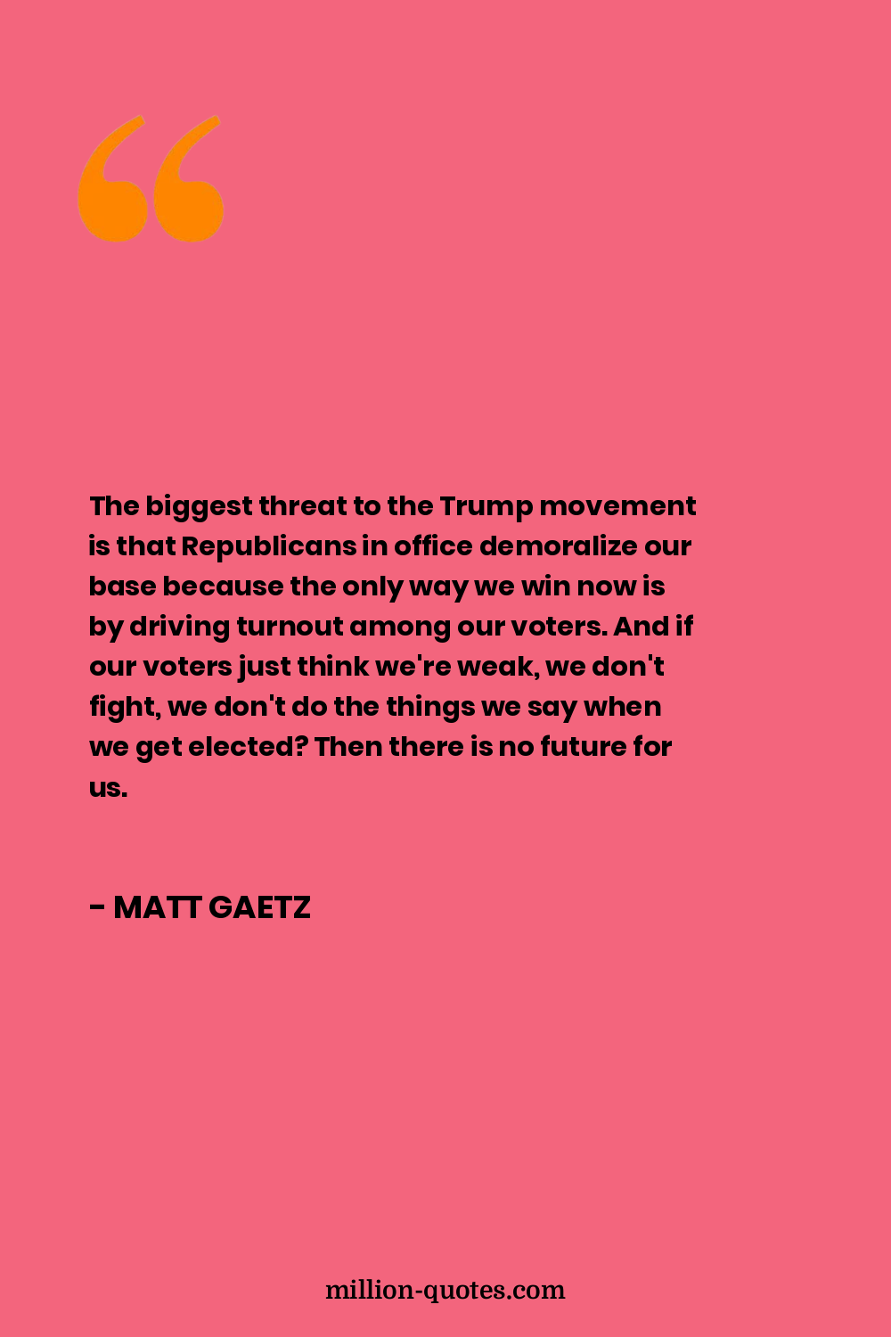 The biggest threat to the Trump movement is that Republicans in office demoralize our base because the only way we win now is by driving turnout among our voters. And if our voters just think we're weak, we don't fight, we don't do the things we say when we get elected? Then there is no future for us.
