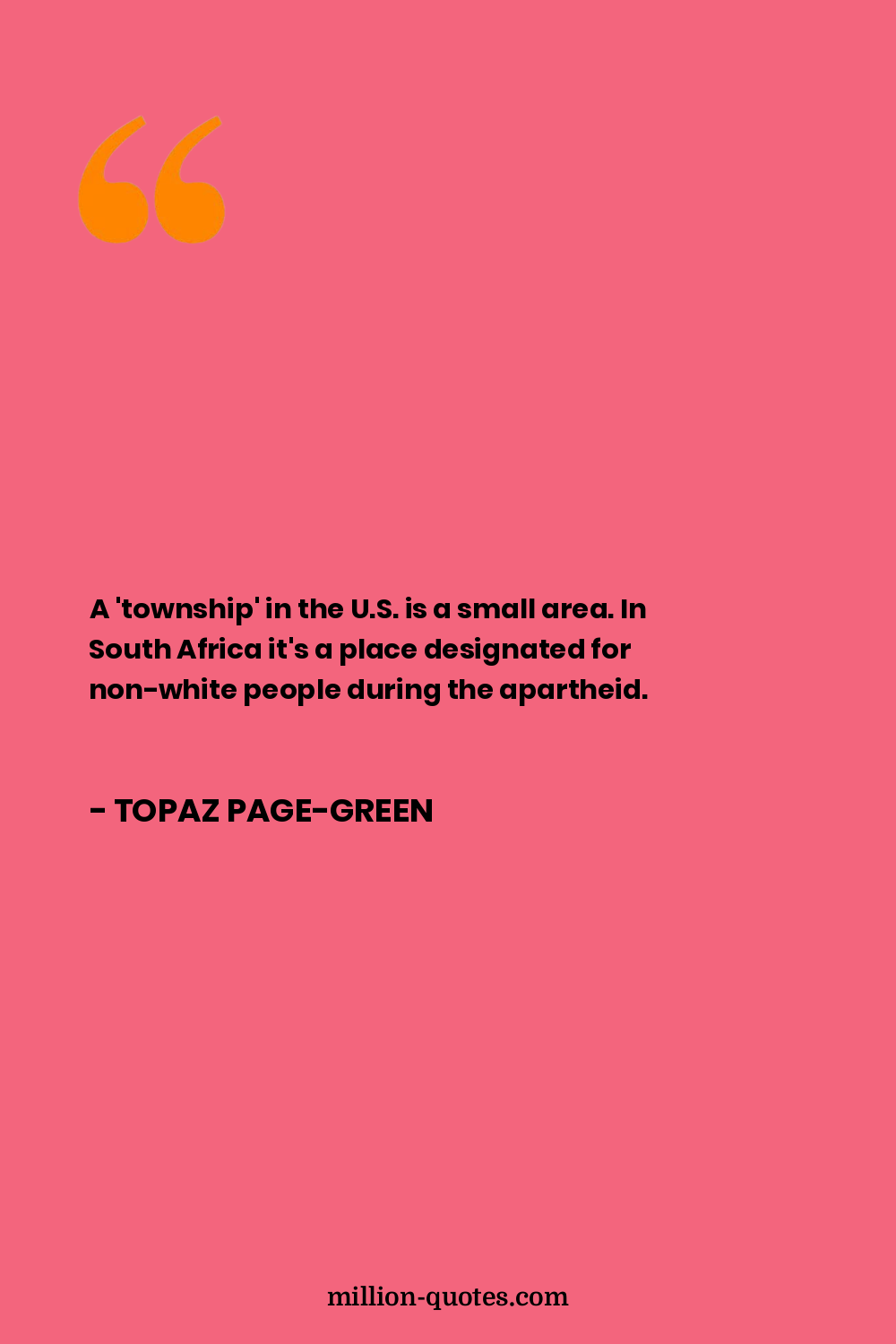 A 'township' in the U.S. is a small area. In South Africa it's a place designated for non-white people during the apartheid.
