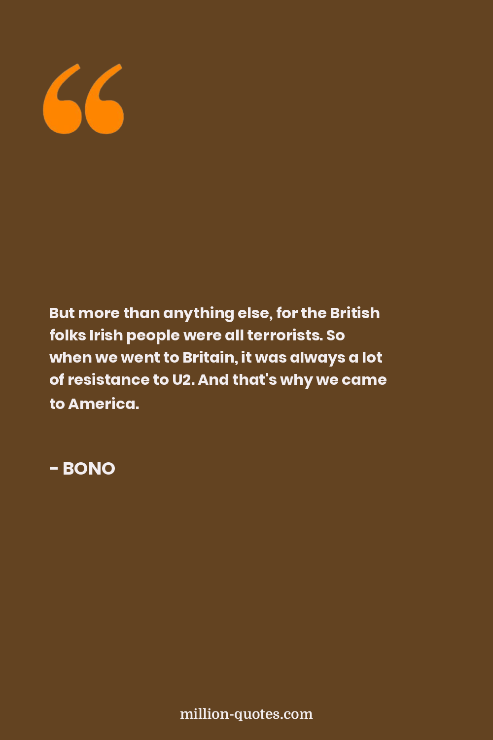 But more than anything else, for the British folks Irish people were all terrorists. So when we went to Britain, it was always a lot of resistance to U2. And that's why we came to America.