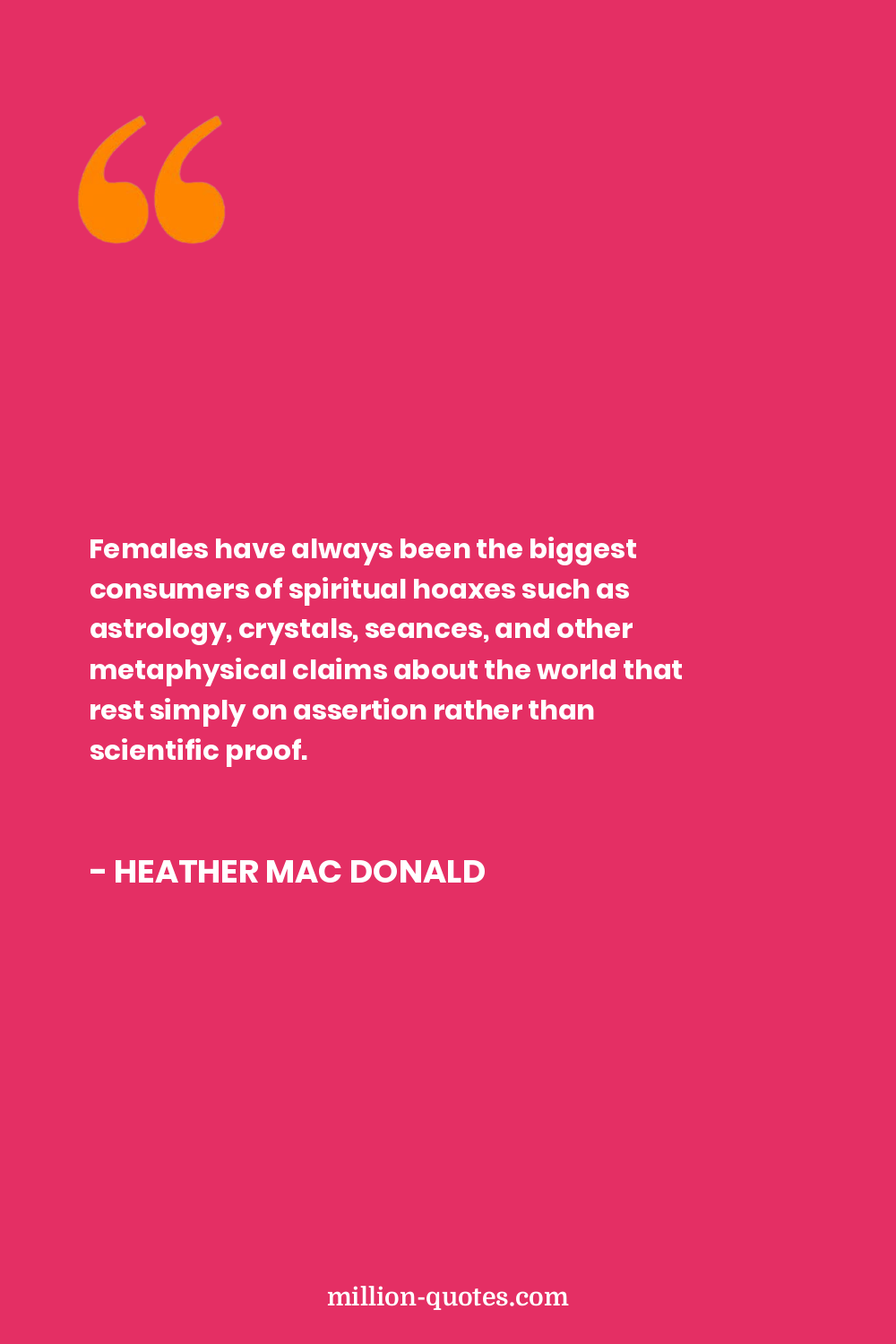 Females have always been the biggest consumers of spiritual hoaxes such as astrology, crystals, seances, and other metaphysical claims about the world that rest simply on assertion rather than scientific proof.