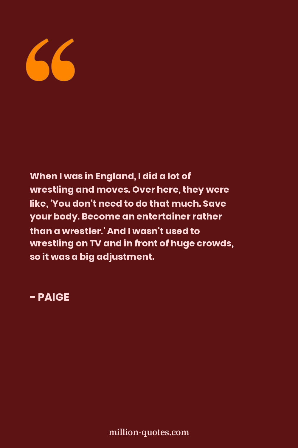 When I was in England, I did a lot of wrestling and moves. Over here, they were like, 'You don't need to do that much. Save your body. Become an entertainer rather than a wrestler.' And I wasn't used to wrestling on TV and in front of huge crowds, so it was a big adjustment.