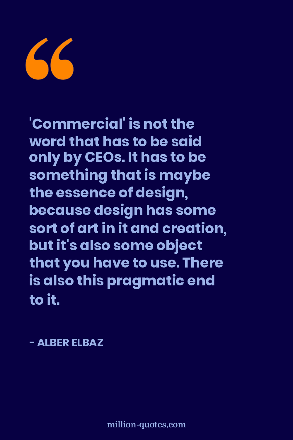 'Commercial' is not the word that has to be said only by CEOs. It has to be something that is maybe the essence of design, because design has some sort of art in it and creation, but it's also some object that you have to use. There is also this pragmatic end to it.
