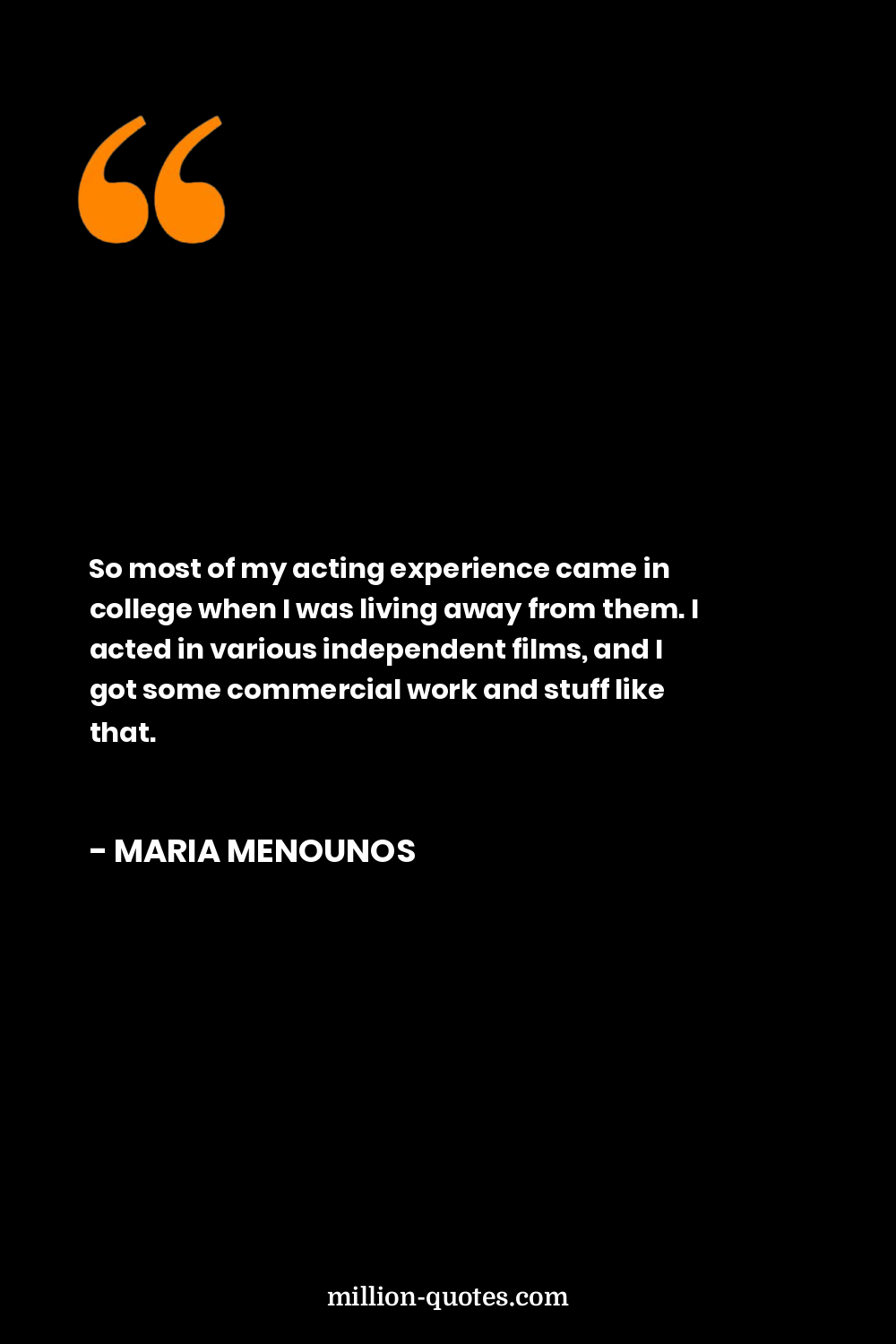 So most of my acting experience came in college when I was living away from them. I acted in various independent films, and I got some commercial work and stuff like that.