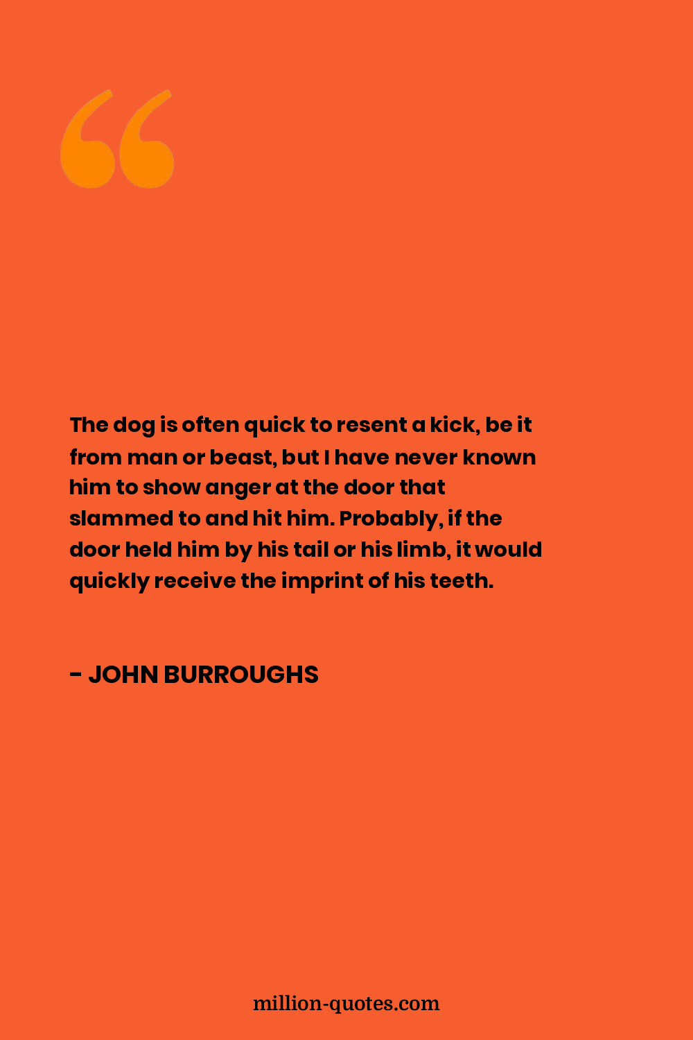 The dog is often quick to resent a kick, be it from man or beast, but I have never known him to show anger at the door that slammed to and hit him. Probably, if the door held him by his tail or his limb, it would quickly receive the imprint of his teeth.