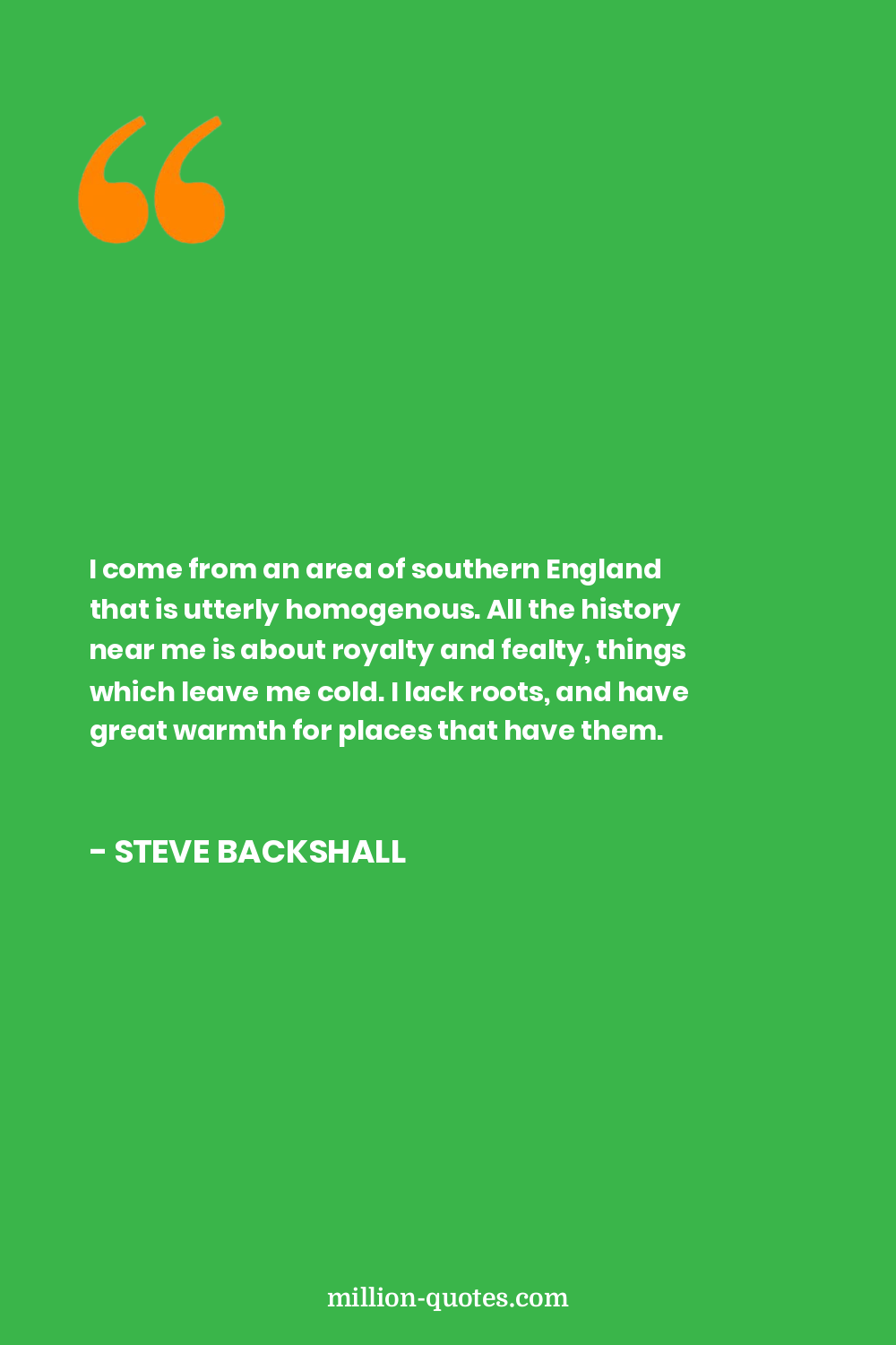 I come from an area of southern England that is utterly homogenous. All the history near me is about royalty and fealty, things which leave me cold. I lack roots, and have great warmth for places that have them.