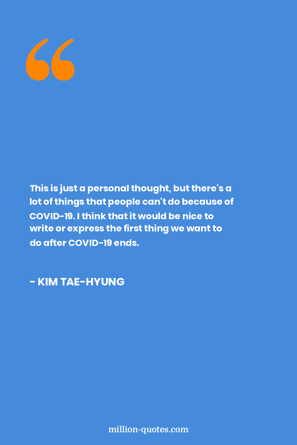 This is just a personal thought, but there's a lot of things that people can't do because of COVID-19. I think that it would be nice to write or express the first thing we want to do after COVID-19 ends.