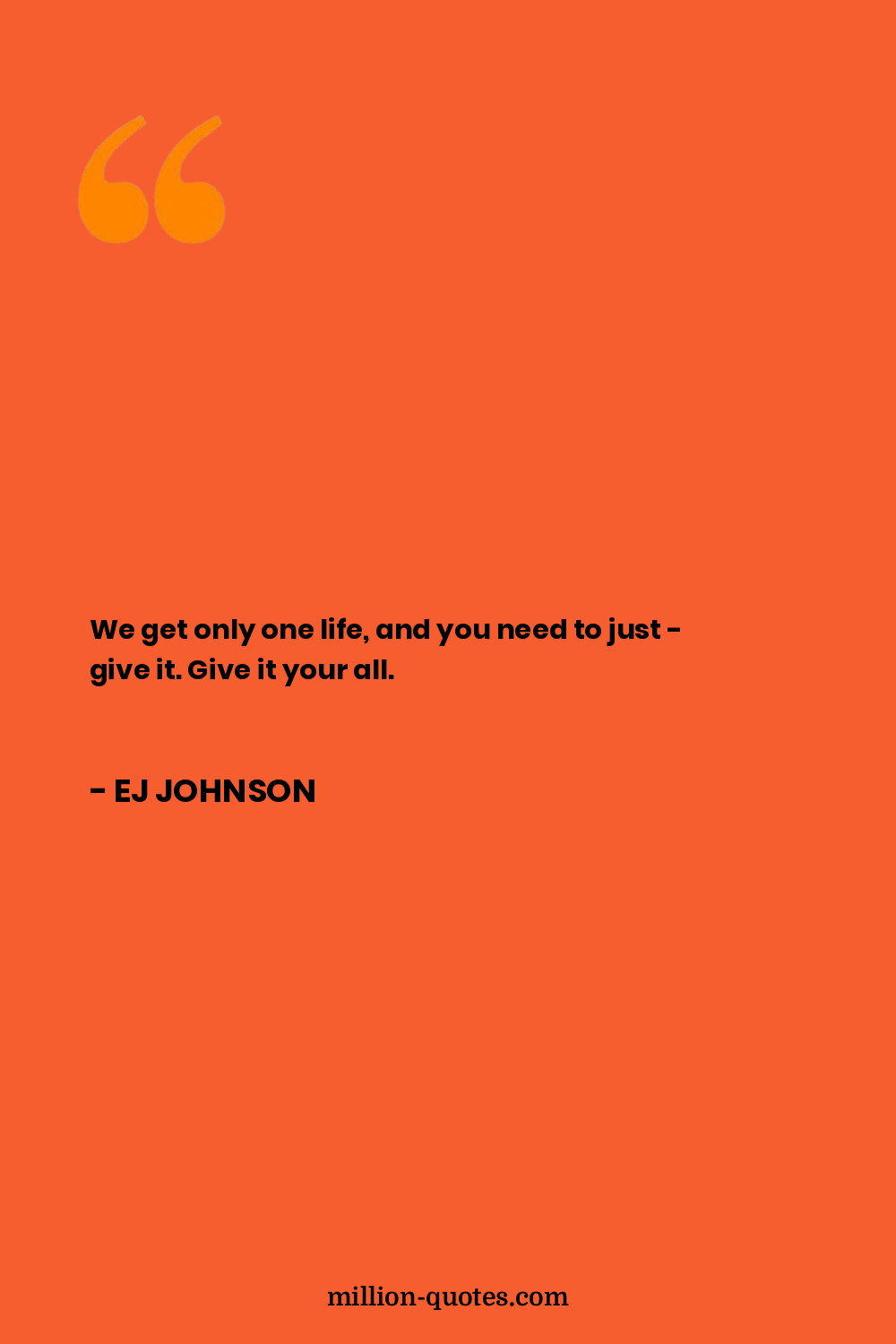 We get only one life, and you need to just - give it. Give it your all.