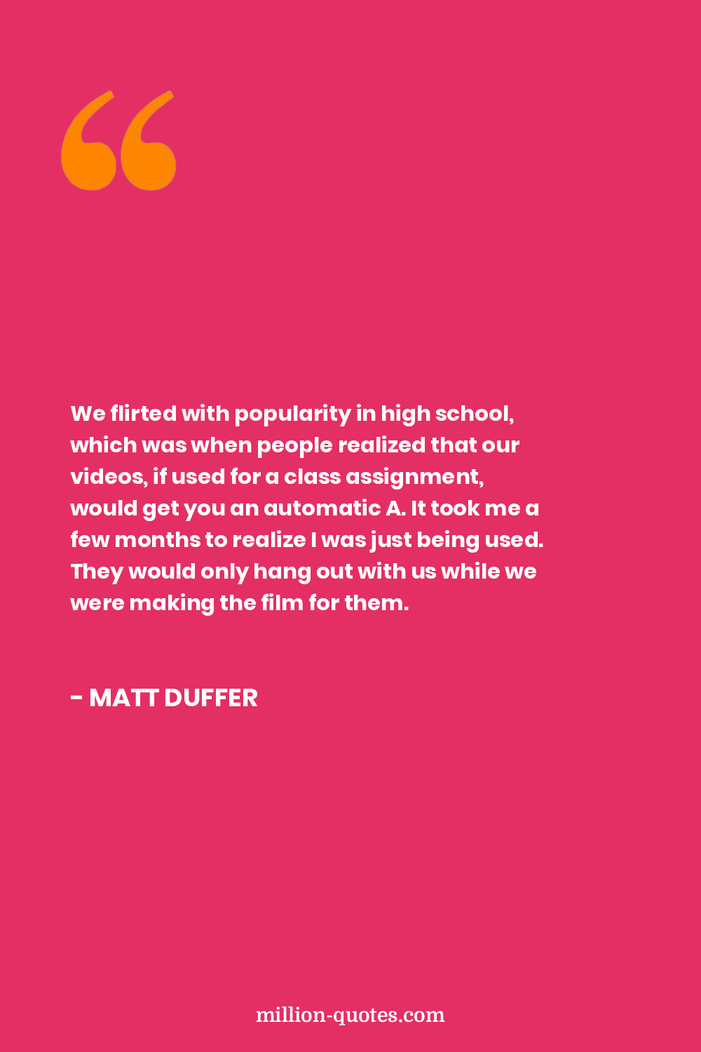 We flirted with popularity in high school, which was when people realized that our videos, if used for a class assignment, would get you an automatic A. It took me a few months to realize I was just being used. They would only hang out with us while we were making the film for them.