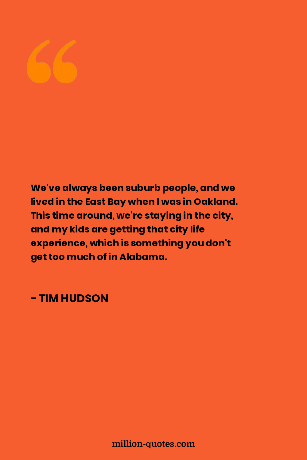 We've always been suburb people, and we lived in the East Bay when I was in Oakland. This time around, we're staying in the city, and my kids are getting that city life experience, which is something you don't get too much of in Alabama.