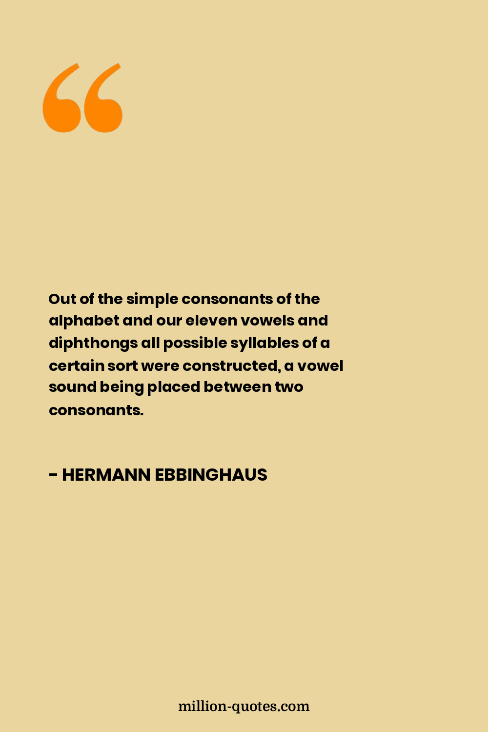 Out of the simple consonants of the alphabet and our eleven vowels and diphthongs all possible syllables of a certain sort were constructed, a vowel sound being placed between two consonants.
