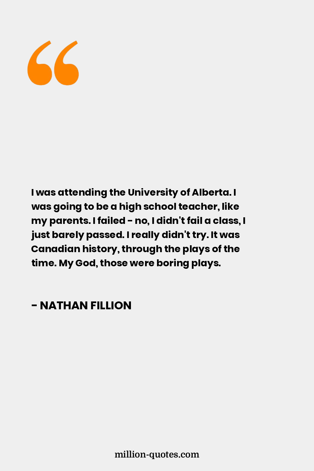 I was attending the University of Alberta. I was going to be a high school teacher, like my parents. I failed - no, I didn't fail a class, I just barely passed. I really didn't try. It was Canadian history, through the plays of the time. My God, those were boring plays.