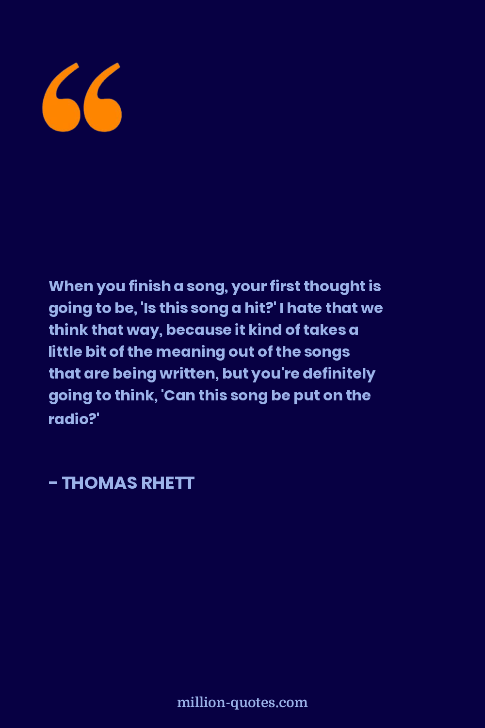 When you finish a song, your first thought is going to be, 'Is this song a hit?' I hate that we think that way, because it kind of takes a little bit of the meaning out of the songs that are being written, but you're definitely going to think, 'Can this song be put on the radio?'