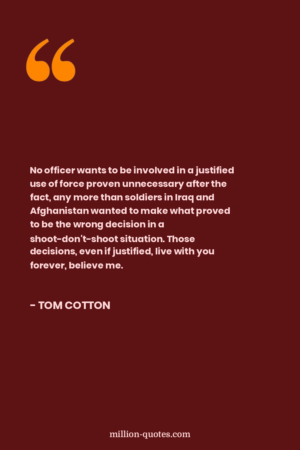 No officer wants to be involved in a justified use of force proven unnecessary after the fact, any more than soldiers in Iraq and Afghanistan wanted to make what proved to be the wrong decision in a shoot-don't-shoot situation. Those decisions, even if justified, live with you forever, believe me.
