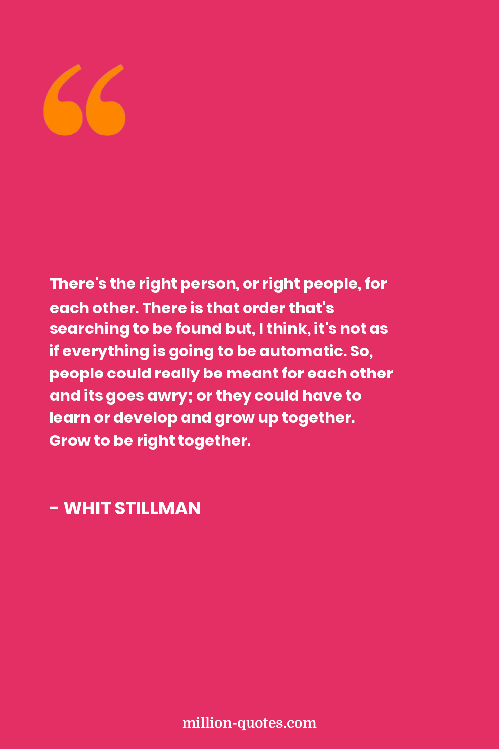 There's the right person, or right people, for each other. There is that order that's searching to be found but, I think, it's not as if everything is going to be automatic. So, people could really be meant for each other and its goes awry; or they could have to learn or develop and grow up together. Grow to be right together.