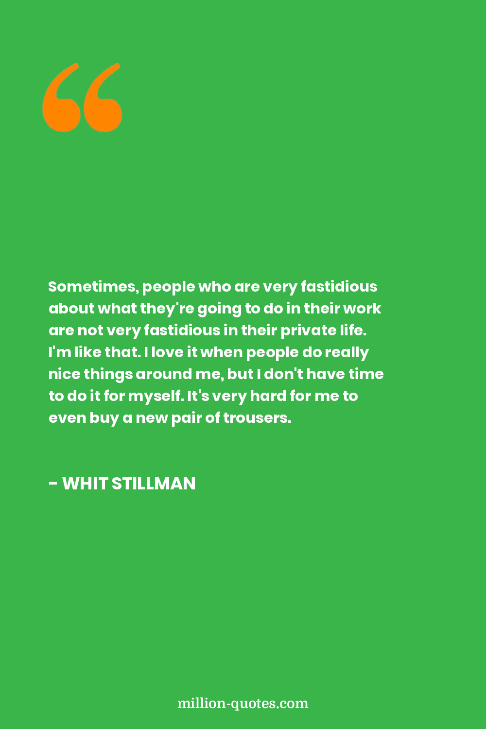 Sometimes, people who are very fastidious about what they're going to do in their work are not very fastidious in their private life. I'm like that. I love it when people do really nice things around me, but I don't have time to do it for myself. It's very hard for me to even buy a new pair of trousers.