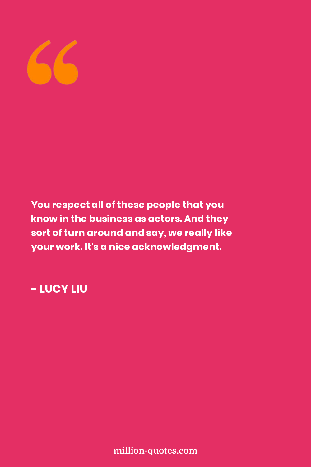 You respect all of these people that you know in the business as actors. And they sort of turn around and say, we really like your work. It's a nice acknowledgment.