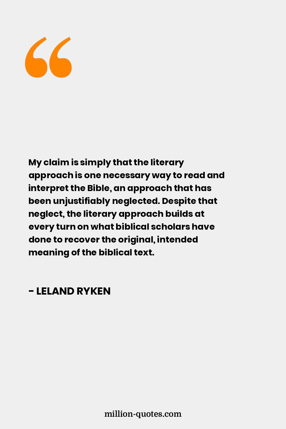 My claim is simply that the literary approach is one necessary way to read and interpret the Bible, an approach that has been unjustifiably neglected. Despite that neglect, the literary approach builds at every turn on what biblical scholars have done to recover the original, intended meaning of the biblical text.