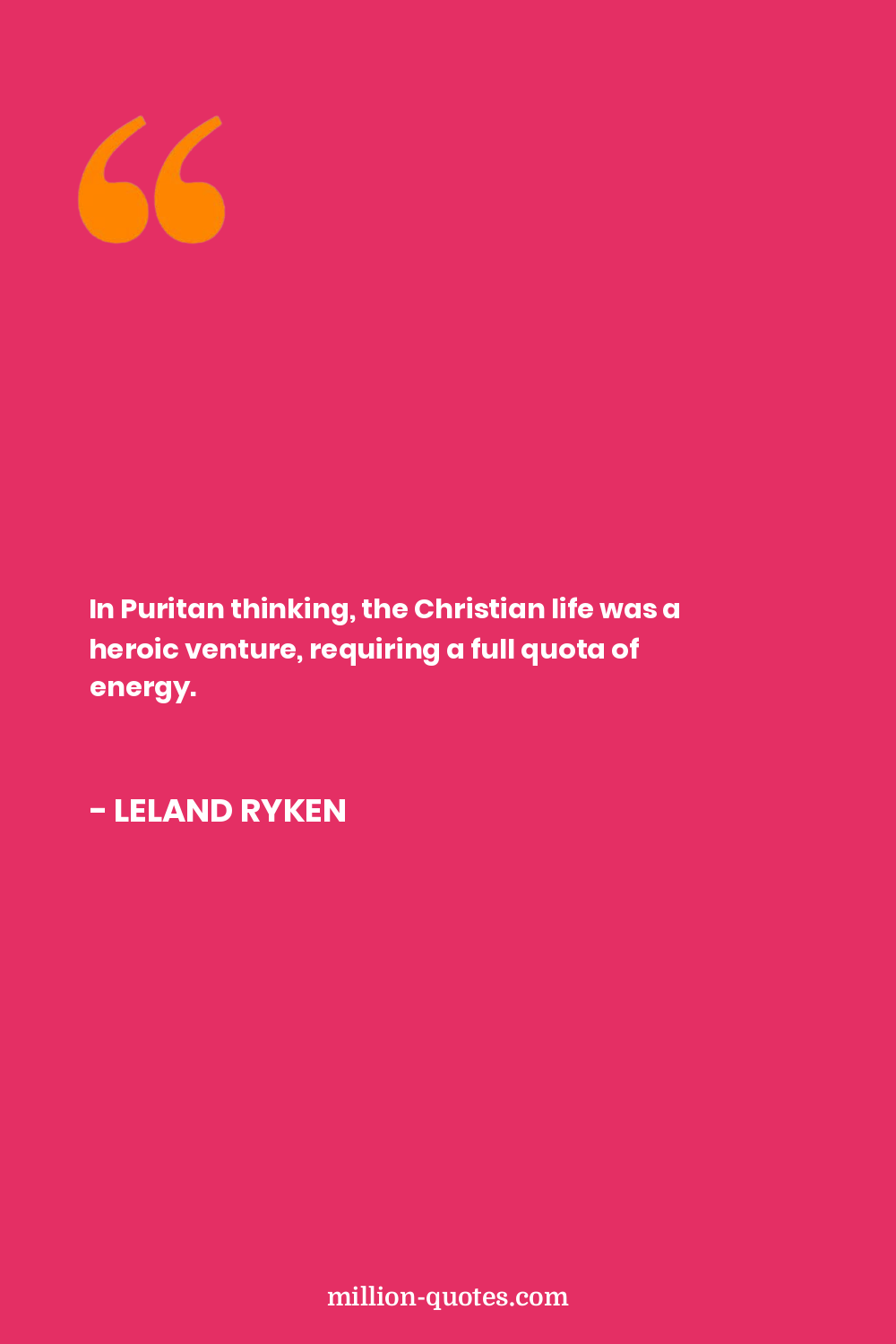 In Puritan thinking, the Christian life was a heroic venture, requiring a full quota of energy.
