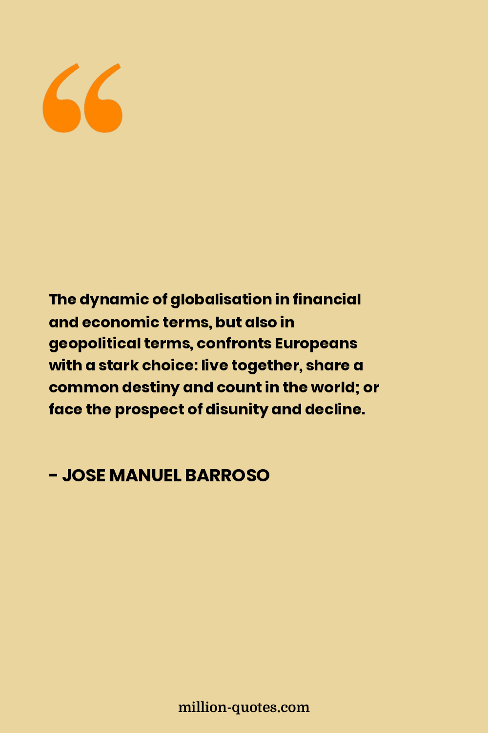 The dynamic of globalisation in financial and economic terms, but also in geopolitical terms, confronts Europeans with a stark choice: live together, share a common destiny and count in the world; or face the prospect of disunity and decline.