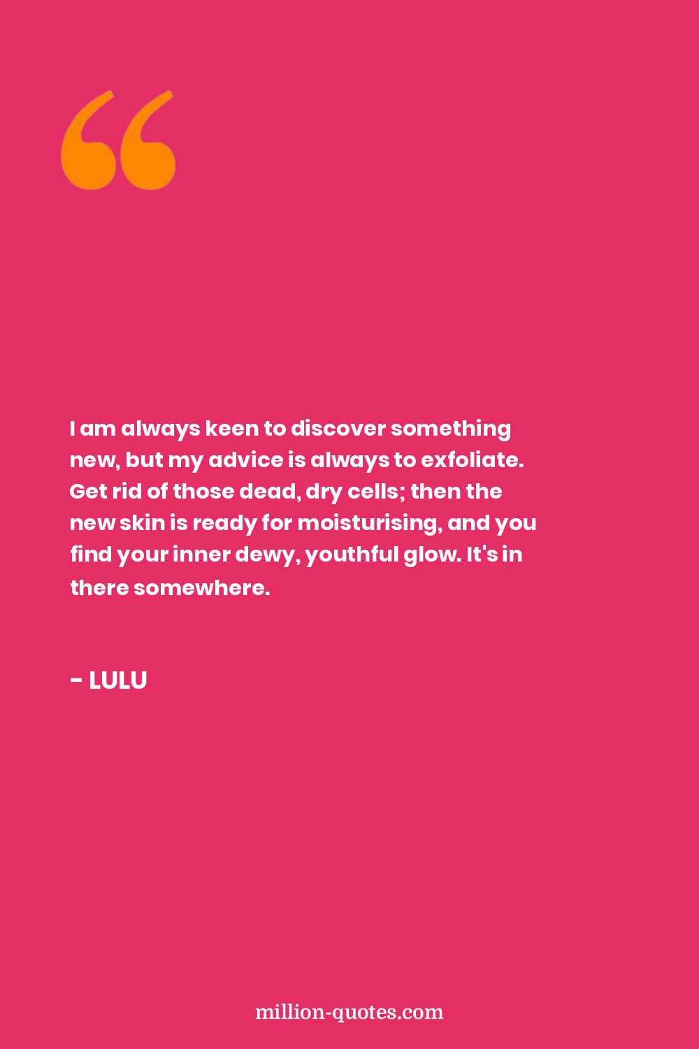 I am always keen to discover something new, but my advice is always to exfoliate. Get rid of those dead, dry cells; then the new skin is ready for moisturising, and you find your inner dewy, youthful glow. It's in there somewhere.