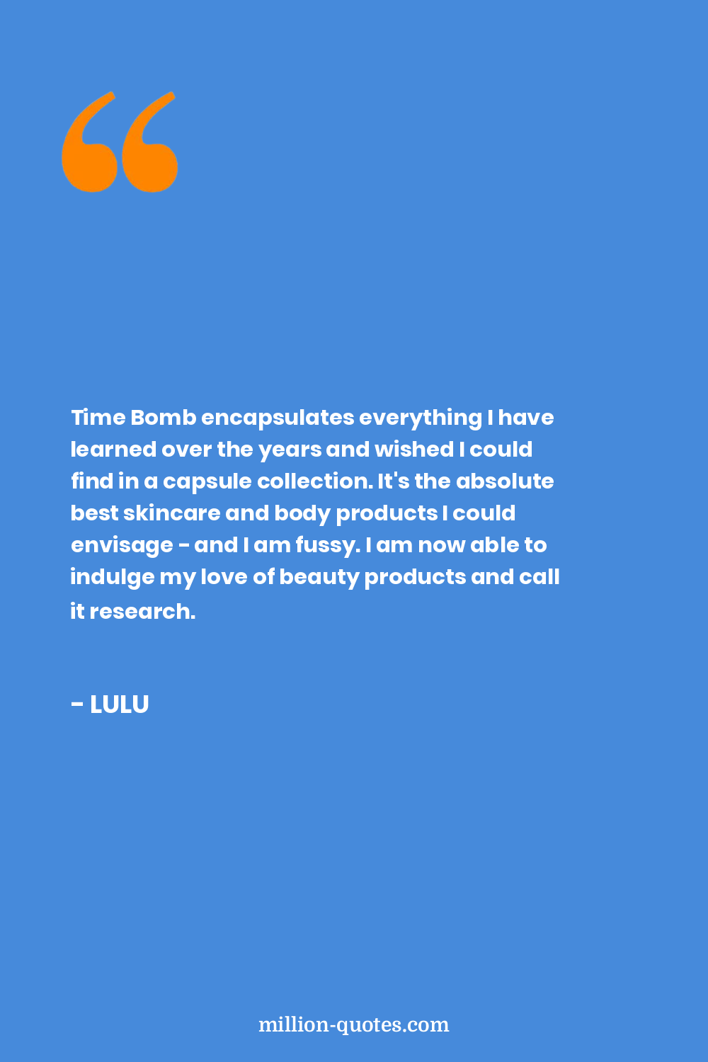 Time Bomb encapsulates everything I have learned over the years and wished I could find in a capsule collection. It's the absolute best skincare and body products I could envisage - and I am fussy. I am now able to indulge my love of beauty products and call it research.