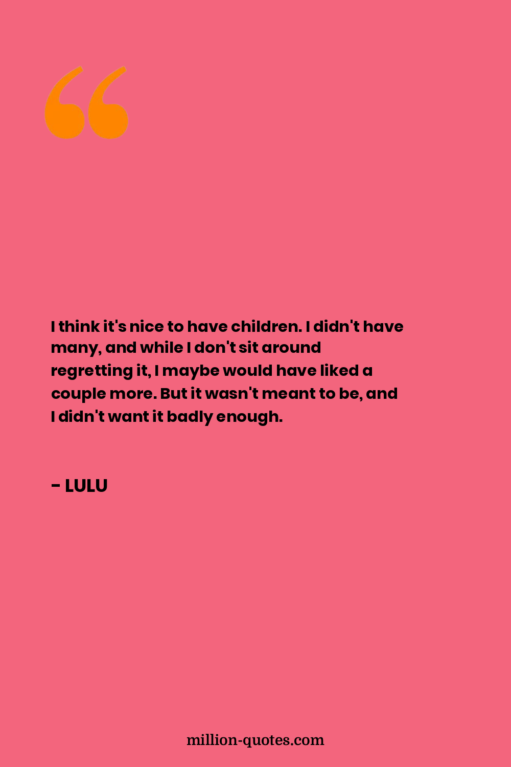 I think it's nice to have children. I didn't have many, and while I don't sit around regretting it, I maybe would have liked a couple more. But it wasn't meant to be, and I didn't want it badly enough.