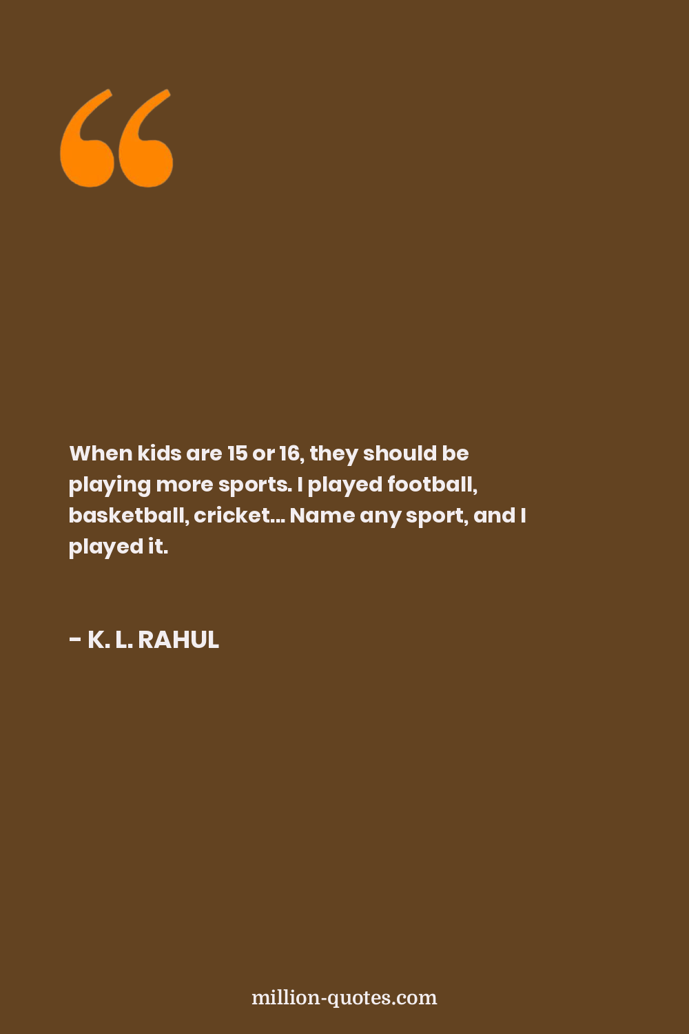 When kids are 15 or 16, they should be playing more sports. I played football, basketball, cricket... Name any sport, and I played it.