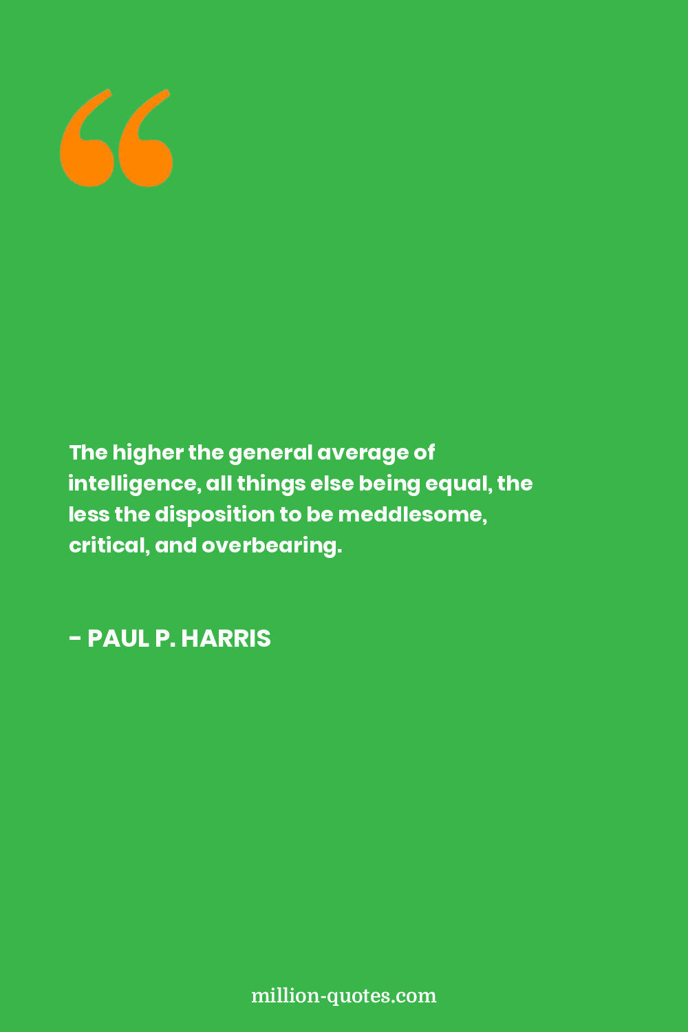 The higher the general average of intelligence, all things else being equal, the less the disposition to be meddlesome, critical, and overbearing.